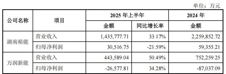 2024年至2025年上半年,公司主要客户湖南裕能和万润新能的业绩变动情况如下表所示: