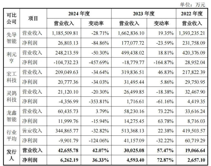 2022年至2024年,发行人与同行业可比公司业绩变动比较情况如下: