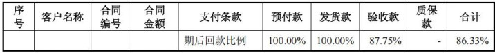 截至2025年8月31日,上海晋瑄智能设备制造有限公司该项目的应收账款余额为1,478.00万元,占合同总金额的25.66%,占比较低。该项目于2024年9月份验收,发货前上海晋瑄智能设备制造有限公司已完成预付款和发货款的支付;验收合格后,已支付验收款250万元,相关款项正在陆续回款,应收账款账龄尚在1年以内,相关订单执行不存在异常情形。