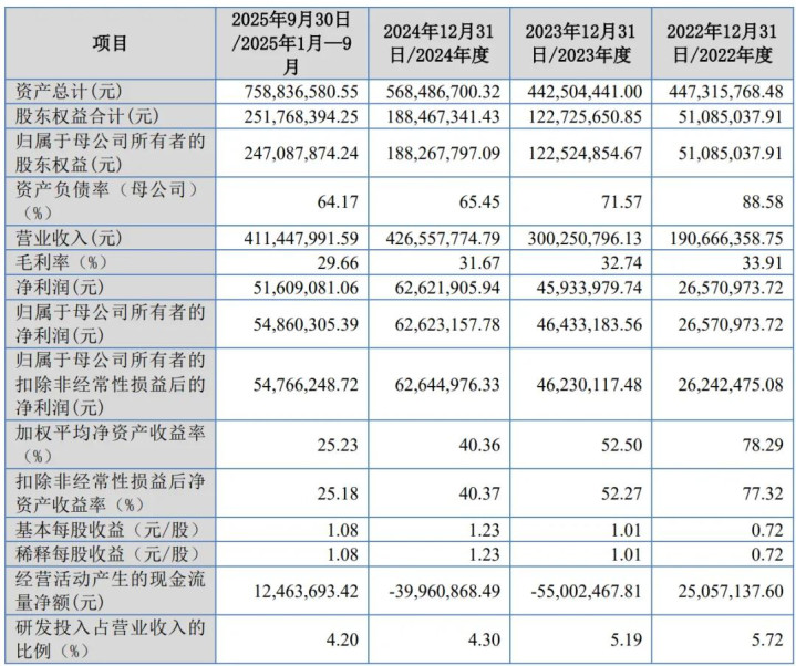 公司自2021年首次实现砂磨机产品的销售,正式进入锂电智能装备领域以来,业务规模不断扩张,2022年至2024年营业收入复合增长率达49.57%。2022年新增订单较多,因此 2022年末的合同负债余额增幅较大,此外对供应商的应付账款余额也大幅增长,因此2022年经营性应付项目的增加额较大,因此存货的增加额、经营性应收项目的增加额和经营性应付项目的增加额基本匹配,2022年度经营性现金流量净额与净利润基本匹配。2023年至 2025年1-9月随着公司经营规模扩大,导致2023年末、2024年末以及2025年9月末经营性应付项目的增加额相较于2022 年大幅下降;与此同时,随着营业收入的快速增长以及2023年开始下游主要客户放缓了应收账款的回款速度,因此2023年、2024年和2025年1-9月经营性应收项目仍以较快速度增长,导致 2023年、2024年和2025年1-9月净利润高于经营活动产生的现金流量净额。